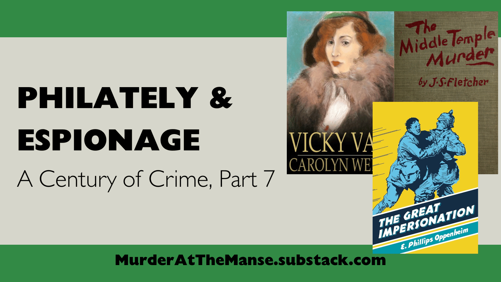This week on Murder at the Manse, I’m continuing my long-term goal of reading one crime novel from the 20th century, in order. You can follow my journey so far here. With today’s entry, we finally reach 1920! So you can expect some more familiar Golden Age authors in the posts to come. For the years 1918—1920, I’ve been reading some very productive writers telling tales that take us into the worlds of expensive parties, stamp-collecting and espionage…